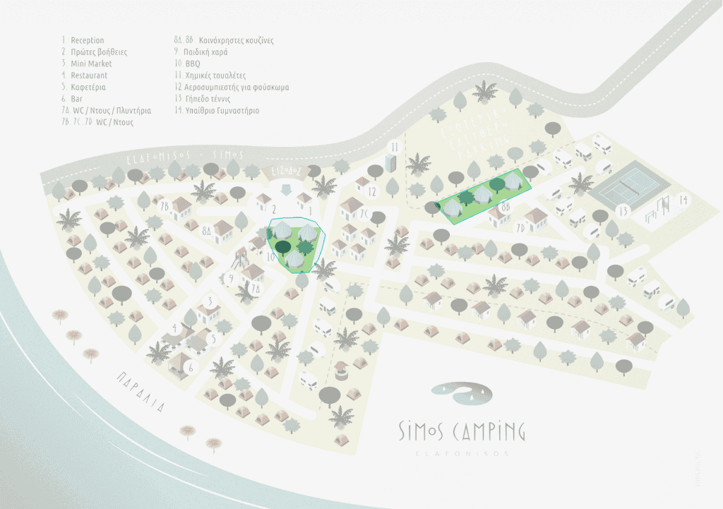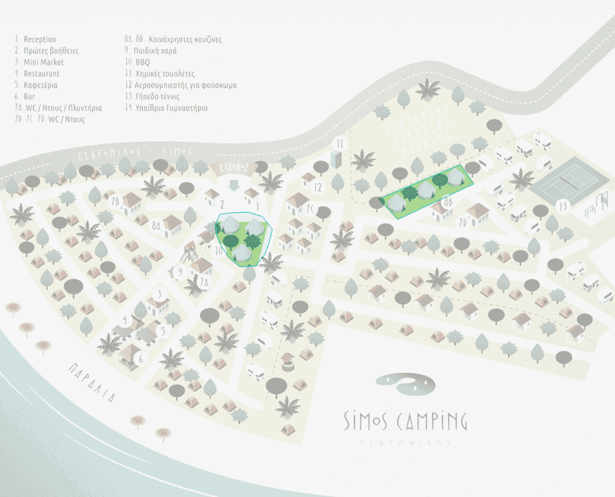 - Εγκαταστάσεις ψυχαγωγίας: Γήπεδα στην παραλία, Γήπεδο tennis, Γιγαντοοθόνη προβολής αγώνων - ταινιών, Δανειστική βιβλιοθήκη, Δορυφορική τηλεόραση, Παιδική χαρά, Υπαίθριο γυμναστήριο, Χώρος BBQ